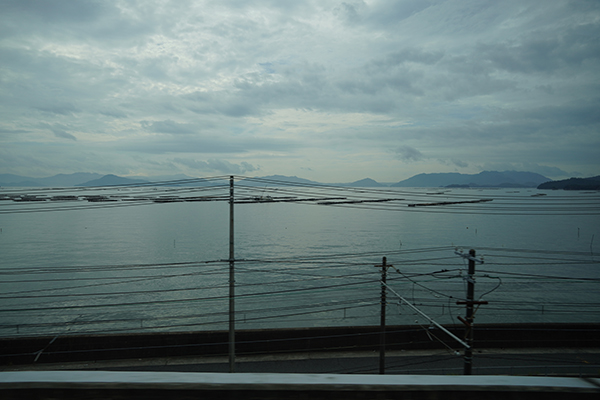 第三天叫醒我的,是窗外烏鴉的鳴啼。不知何時,天上的烏雲大多都悄然散去,留下早晨的陽光溫柔的拍打在我的臉上。在前往目的地的高速公路上,青山明媚、豔陽耀眼。正觀賞著與臺灣有所不同的山景,眼前突地一亮,在朝陽的照射下波光粼粼的瀨戶內海頓時映入眼簾,在群山的包圍下,加上那些零星佇立在海面上的奇岩怪石,是顯得那麼聖潔恍若仙境,但在其之上悠遊的、嬌小得彷彿是玩具模型的小船們還是為它增添了些人間氣息。但曇花一現般,轉眼間那湛藍便隱沒在青山之後,與出現時一般突然。
