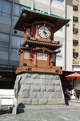 在品嘗完愛媛鄉土海鮮風味的美味餐點之後,來到的是愛媛縣西部的道後溫泉本館。領隊說,它其實便是宮崎駿的作品「神隱少女」場景的取景地之一。在午後斜陽的橘黃色陽光照耀下,彷彿下一秒就會看到天空瞬間暗去,溫泉湯屋在黑夜中亮起一盞盞的油燈。繞過道後溫泉本館,看見的是熙来攘往的道後溫泉街。穿越人潮,在商店街末尾的是臺北市松山區也有的「少爺音樂鐘(道後溫泉祈福音樂鐘)」。我和爸爸有幸趕上整點,得以觀賞其自帶配樂的人偶表演。看著鐘漸漸地揭開暗藏的機關,人偶隨之出現、跟著叮叮噹噹的樂聲手舞足蹈,真的很有趣。