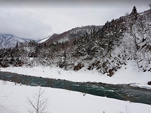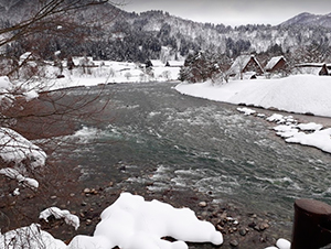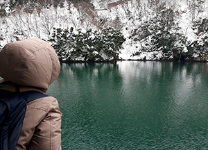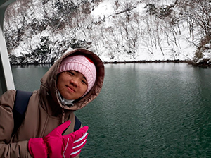 之後導遊帶大家到庄川峽坐船,這好像也是我第一次坐船吧~船開始行駛後,我就走到甲板去看風景。不是我在講,在甲板上那股寒風襲來,真的是要冷到抽筋那種感覺。。。超冷的啦!庄川峽的雪景遍滿了整個山,在峽谷間徘徊的感覺好美妙,好像自己在仙境裡面,如果還有第二次我還會想來造訪的!