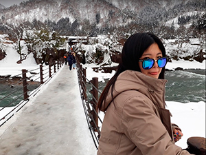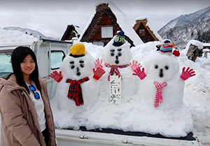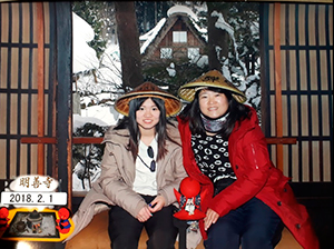 今日最後一站是合掌村,那邊的房子真的好有特色哦~屋頂的造型,像兩隻手掌合起來一樣,難怪稱為合掌屋。被白雪覆蓋的整個村莊,就跟進了薑餅屋世界差不多,我還有進去參觀裡面的格局和擺設,屋裡瀰漫著一股濃濃的煙燻味,是一樓燒木頭的味道。屋裡的每層樓板中心是空的,共有三層樓,燻煙從一樓往上竄,透過空心的層板,燻的整間屋內和柱子都是黑漆漆的,每走一步木板好像就快塌掉了,還發出吱吱嘎嘎的聲音。2樓有拍照服務,照片洗出來真的很美很有紀念價值。