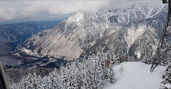 早上我們去坐新穗高空中纜車,高達海拔2000公尺,需要搭兩次才能到最上面喔~沿途的景色看了讓人覺得很舒服!也超壯觀的。