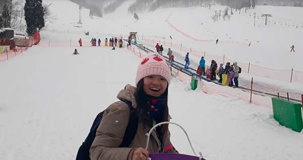 吃完午餐後,接下來就是我最期待的滑雪場?!我們是雪盆喔~我滑了大概有三十幾次吧!!滑到後來簡直是用躺的滑下去,滑到不平的地方都快飛起來了。雖然冷爆了,但是真的好好玩喔!如果有機會冬天再去日本,我一定要再去滑雪!