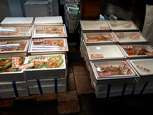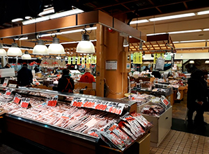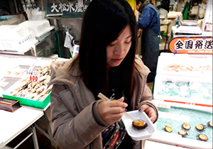 路有通的地方我們就去,像是東茶屋街、近江市場、湯國之森...近江市場是當地菜市場,日本菜市場跟台灣差好多,很乾淨整潔。連工作人員都是穿著制服在工作,每一攤的新鮮魚貨也都擺設整齊價格鮮明,特別的是可以"立食",選擇好自己喜歡的海鮮後,能立即請老闆處理並馬上現吃。我跟媽媽一起吃了海膽和干貝喔!哇~真的好好吃喔!