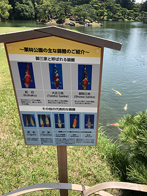 在遊覽車上簡單休息過後,抵達占地凌駕日本三大名園的栗林公園,這個名號不是叫假的,在集合回程我和爸爸差點迷了路,幸好之後順利回到遊覽車所在地。不過說到這公園最讓我感興趣的,果然就莫屬於那大湖了。因為只要到這種地方,就有很高的機率有魚可餵,我挺喜歡餵魚,果然讓我在湖岸找到一家冰店有賣魚飼料。