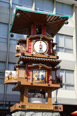 在品嘗完愛媛鄉土海鮮風味的美味餐點之後,來到的是愛媛縣西部的道後溫泉本館。領隊說,它其實便是宮崎駿的作品「神隱少女」場景的取景地之一。在午後斜陽的橘黃色陽光照耀下,彷彿下一秒就會看到天空瞬間暗去,溫泉湯屋在黑夜中亮起一盞盞的油燈。繞過道後溫泉本館,看見的是熙来攘往的道後溫泉街。穿越人潮,在商店街末尾的是臺北市松山區也有的「少爺音樂鐘(道後溫泉祈福音樂鐘)」。我和爸爸有幸趕上整點,得以觀賞其自帶配樂的人偶表演。看著鐘漸漸地揭開暗藏的機關,人偶隨之出現、跟著叮叮噹噹的樂聲手舞足蹈,真的很有趣。
