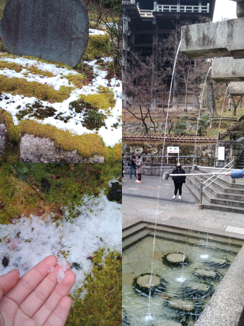 今日的開端是以【嵐山渡月橋】啟程,知道我們遇到了什麼嗎!!??是雪!清晨時下了小小的雪,我摸了摸觸感,蠻像綿綿冰的! 野宮神社是求姻緣、學業相當靈驗的神社, 也是日本唯一的黑木鳥居哦。