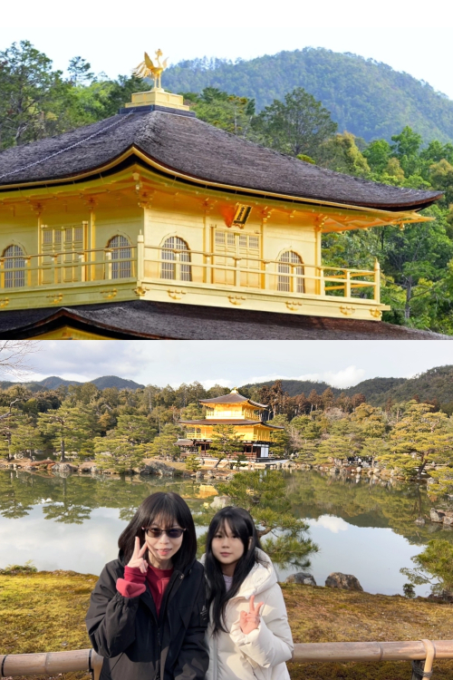 再來是京都最具代表性的建築-【金閣寺】,裝潢超級華麗,外觀有很多金箔做為裝飾,在陽光的照射下顯得金光閃閃。金碧輝煌的倒影在水面上搖曳甚是美麗。雖然華麗,但相較於八坂神社來說,我個人認為八坂神社略勝一籌。八坂是又大又華麗,有種富麗堂皇的感覺,而金閣寺是肉眼可見的貴氣,小而精緻。