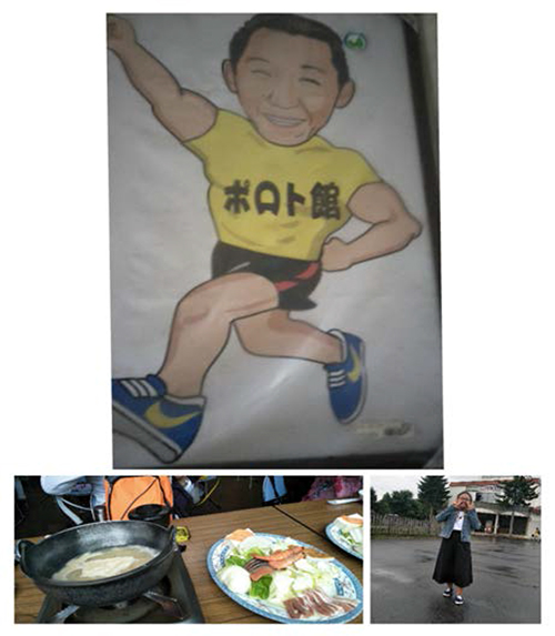 第二天早上一起來看著外面的美景精神就變好了,第一站是先去市場逛逛,那裡都是一些生猛海鮮,還有哈密瓜,但有個很有趣的是黑色的西瓜,逛完就去第二站函館車站搭車到下一個地方,第三站是去大招湖,很可惜的事去的時候下雨所以風景不是很漂亮,之後就去吃午餐,導遊介紹那裡的老闆非常自戀,因為他之前是跑馬拉松的所以他的衣服上都會有他跑步的圖案,一到吃飯的地方老闆就站在門口介紹那裡的可口可樂還會說一句台語超好笑,下一站要去採水果,但因為車程比較長導演就先讓我們睡覺,不久車子就開上高速公路,我發現北海道的風景真的超美的,他們的山上都沒有高壓電也沒有房子非常的自然,還有很多原始森林,看著外面的風景我也睡著了,一起來就到了休息站在下車前導遊有跟我們說他有一個習慣,不管他到哪一個國家只要車程有一小時以上的,他們下車休息時都會幫司機買黑咖啡,我覺得真的非常非常的有愛心,