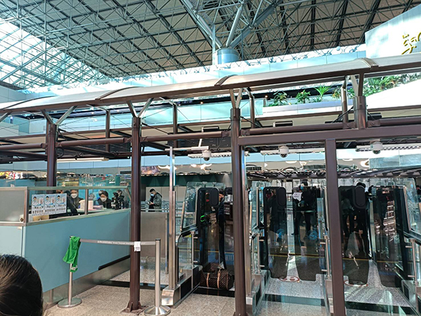 因為我們的行李眾多,在入機場時就去拿了第一次看見的推車,很方便~六點半時便遇見了要帶我們前往北海道的嚮導’’COCO’’,她在集合地點貼心的提醒我們到了日本機場後要注意的事項,尤如出海關後的申辦手續、要做填寫的資料等等。下一站就是要過海關了,第一次見到海關的我十分驚訝,跟電影中的敘述相差無幾,幾乎所有的物品以及外衣都要拿下來經過X光機進行檢測,最後一關是要做人臉識別,驚險的是,媽媽做了兩次都沒成功,讓當時已經通關的我們心急如焚,還好最後有順利通關。