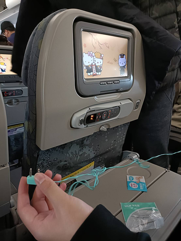 放眼望去是一望無際的精品區,不知道走了多久才終於抵達我們的登機口,坐在等候區興奮的等待著登機時刻的到來,我像無知的孩童一般環視著機場的一切,直到親切又溫柔的嗓音響起:”請第三區的旅客進行登機”這才注意到預計的登機時間已經到了。可惜這次班機的位置並沒有靠窗,一坐上位置便開始查看面前的東西是什麼,發現了以前常常聽同學提起的「小電視」還有特殊的雙孔耳機,起飛前的安全提醒有別於我既定的印象,他是以間諜的身分為背景來述說機上的安全設備,是一個新奇的體驗!