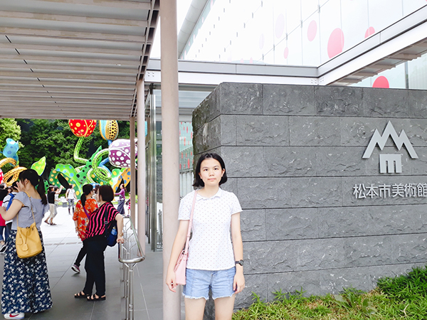 今天我們上高地去看河童橋,說實在,我有點懼高,所以當我小心翼翼得踏在橋上瞄到下面令人震撼的溪流和河床時,我的手和腳忍不住的顫抖起來,看著旁邊神色自若的人我不由得嫉妒他們一下。 接下來就是我大展身手的時後了,我們到了果園,導遊說可以讓我們自己藍莓吃一個小時,也可以帶走一盒回飯店吃耶 ! 經過日本農田阿姨的指導後,我們開始展開覓食,阿姨說果子顏色愈深的藍莓愈好,還以為這種的藍莓會很少,沒想到竟然看到串串小鈴鐺串的藍莓在陽光下黑的發亮阿 ! 嘗起來更是美味,都不會酸,當一個小時過後,看著收穫滿滿的盒子,心裡有著說不出的滿足。在前往松本美術館的路上時,導遊簡單的介紹了日本藝術家草間彌生,其實在我國小美術課時老師曾經把她的作品給我看過,因為她的作品很特別,是用鮮艷的顏色及圓點畫成,所以在我腦海中記憶特別深刻,在參觀草間彌生的作品時,我發現她的每幅作品中都有不同的想法告訴人們,而且每一幅都很精緻且複雜難怪她的名聲這麼響亮。我還看到了三村一男的作品他的作品是由油畫和蠟筆。晚上,抵達飯店房間時令我大吃一驚~房間非常大而且有廚房還可以煮飯,還有附許多碗盤,所以呢~今天又睡了一個好覺~