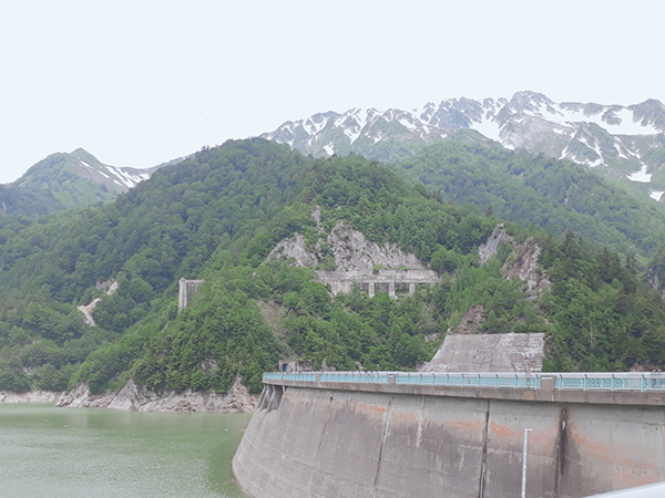 今天是個繁忙的一天,要坐六種交通工具上、下黑部立山,我們首先搭電氣巴士到黑部水庫,走在水壩上不但可以看見水洩洪而下,白花花的水花就像是幽白的煙霧往下墜,還可以看見一道彩虹忽隱忽現得出現在這小小的瀑布上。接著,搭著地下纜車我們來到了黑部平,再接下來我們搭空中纜車到達大觀峰,再搭無軌電車到室堂〈立山主峰〉,我第一次看到雪耶!雖然只是較硬的餘雪,但是已經足以讓我開心的東跑西跑了,結果差一點滑倒,嚇死我了!而且還有著餘雪的黑部立山從遠處看真的好美!玩完雪後,我們接下來要搭高原巴士到美女平,一開始,我以為又會是看到一座座的山嶺和樹林,沒想到,務農的什麼都看不到啊!我突然開始佩服起那些司機大哥怎麼載我們到這裡了,不過說真的,我從來沒看過這麼濃的霧耶!令我大開眼界。之後,我們搭電動纜車穿過大霧到立山站,再由我們這一團的遊覽車回飯店了~