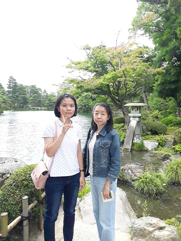 來到了我們旅行的最後一天,第一個行程就跟我的童年有關,那就是─搭哆啦A夢路面電車,小時後我蠻喜歡看哆啦A夢,覺得他能從他的口袋裡掏出各式不同的高科技產品真的好神奇,所以,當在搭這班車時,看到裡面有著哆啦A夢裡的一些角色,過往的回憶被我翻開,我不禁微微一笑,想著看過的劇情。接著,我們要去的是日本三大名園之一─兼六園,當我在逛裡面時,覺得這些植物長的很壯、很自然,在比較潮濕的土壤上,仔細一看,還有青苔呢!看起來完全不像人工造景出來的!裡面還有一個日本最古老的噴泉、許多長的古怪但又整齊的松樹、日本武尊之像、非常有人氣的金箔冰淇淋……,許多令我印象深刻的地方。我們行程最後一個就是逛購物廣場啦~在小松店中,有非常多的日常用品、食品、蔬菜生食、電器……,數都數不完的東西可以逛,最後我們買了一顆鮮嫩多汁的水蜜桃,在小松機場還沒檢查行李前吃掉了。