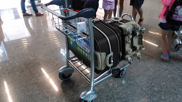到了後看到的行李推車,挺新鮮的,可以一次推我和媽媽的行李,真的很方便!