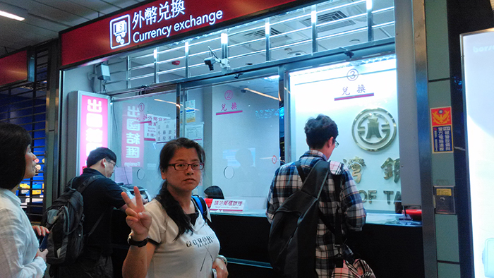 機場裡的銀行,雖然很方便,但要被收一百元手續費,而且要排隊,幸好沒有排很久,