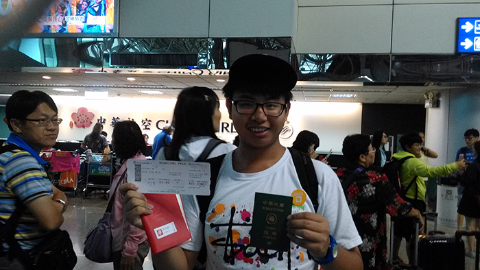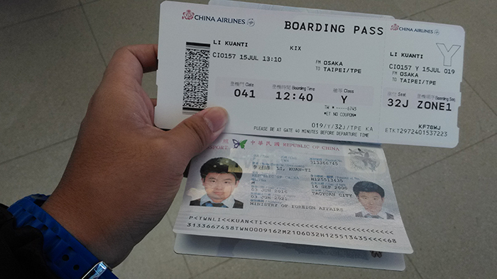 在成功換好日幣後,不費吹灰之力,找到了野生導遊,而我們的導遊叫──劉導。發給我們人生中第一本護照及機票,並告訴我們一些注意事項,接著準備要去寄行李出海關嘍!