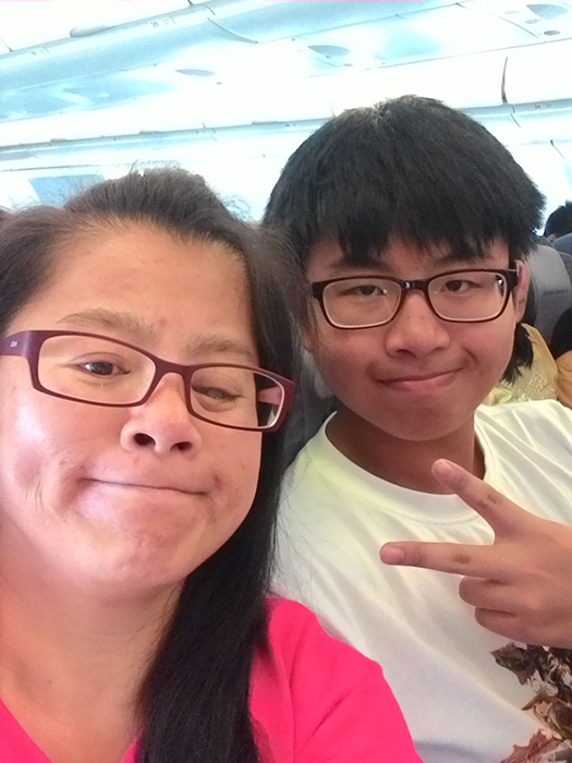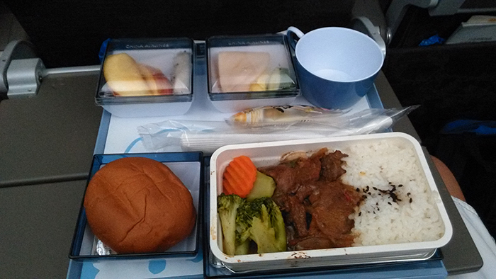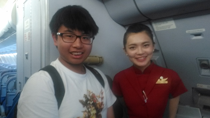 走進去後,我們坐到窗邊,準備欣賞起飛的風景,沒想到飛機只是先滑行到跑道,等待指示,接著啟動引擎,速度瞬間變快,而且我們就坐在引擎位置附近,轟轟巨響讓我更加緊張,就這樣伴隨著害怕的心情翱翔天際,等我們到日本後,準備下降了,我遵照指示扣上安全帶後,恐怖的來了──下降的時候,好像在做大怒神一樣,感覺瞬間掉了幾百公尺,但我看大家好像都習以為常的,真的是「都市憨,鄉下俗」,不過飛機餐看起來不錯吃,有人卻說不好吃,我想真的像新聞所說的一樣,是我們離引擎太近,所以才會影響食慾。