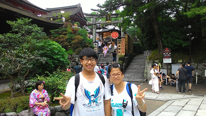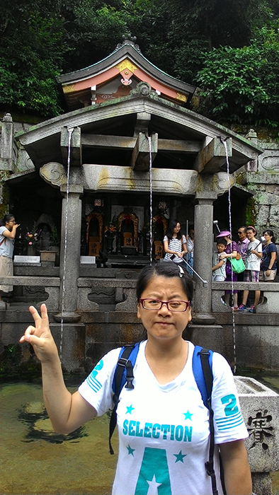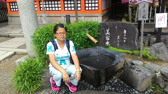 充滿許多佛的清水寺,我們還去拜觀世音菩薩,拖鞋入內後看到可以敲的鐘,我和媽媽趕緊敲一敲,祈求運勢順利、身體健康,聽說敲的越好聽就越能被神明眷顧,希望我們所說的話,神明都有聽見,而紅通通的清水寺讓我最印象深刻的是在淨身區的冰冷天然自流泉水,讓我對這一次的淨身,印象更深刻。