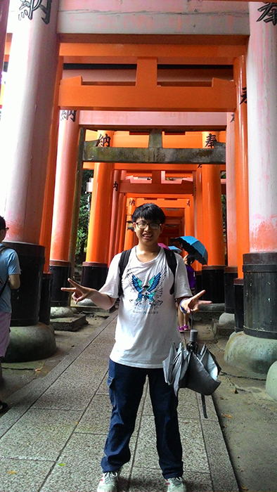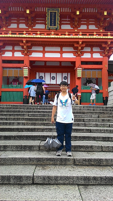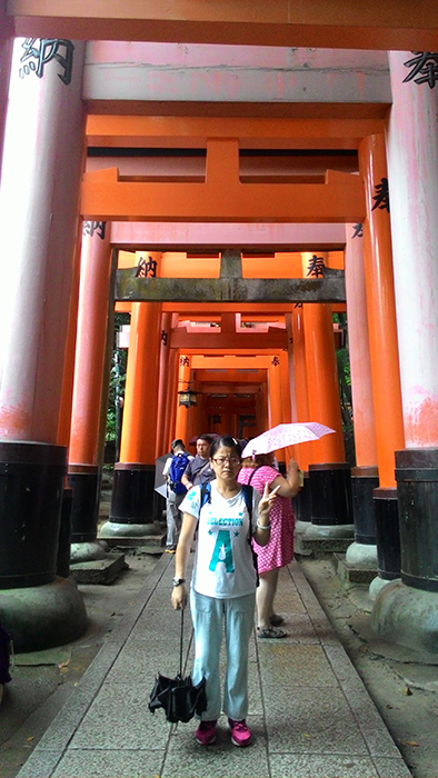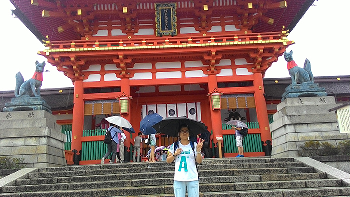 接著到伏見稻荷神社後,看到好多鳥居,原本都不知道鳥居有什麼用,看到時只會覺得是日本的文化,但導遊跟我們說會有烏鴉在上面歇息,而烏鴉是神明的坐騎,所以在日本烏鴉雀是個吉祥物。稻荷神是掌管農業部分的,還有可愛的狐狸使者,要拜的時候先把雙手合十許完願再拍個兩下,就可以了,不過我覺得最厲害的是許多公司捐贈的鳥居所排成的千本鳥居,非常壯觀,原來我常看到日本的鳥居隧道就在這。