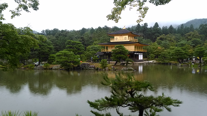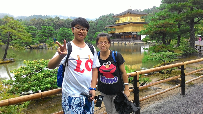因為我們昨天有先去平安神宮,所以我們就睡晚一點再起床,多留在飯店休息,我們一樣吃完早餐後,馬上前往金閣寺,這次的古蹟很特別,不但門票是做成一張平安符,而且建築物金箔要去打造的,從遠方觀看,足以令人瞠目,導遊還說可以拍起來當facebook的封面照,非常可觀。