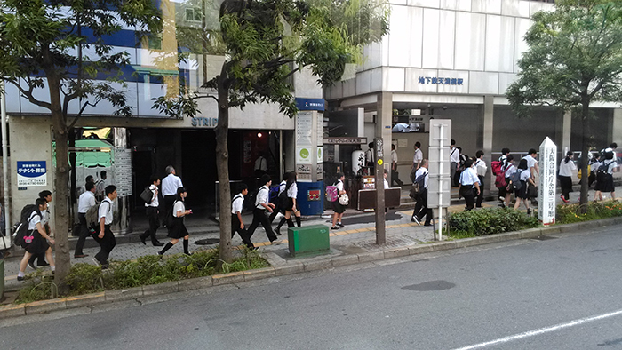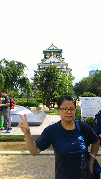 一早起床後,我們要到大阪城公園,一路上看到一群日本的上班族,跟台灣不一樣,都是白襯衫黑褲子或黑裙子,非常一致。