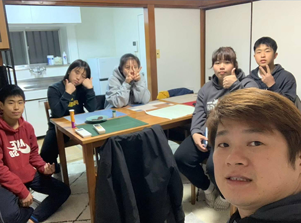 我第一次跟日本學生練習對摔,心裡真的很緊張,因為我的日文不好,不知道怎麼溝通,只能用些簡單的英文跟比手畫腳來解釋,例如一些簡單的自我介紹自己是國中三年級I am third grade of junior high school.還有很高興能來這裡學習Very happy to study here,跟在做一些動作時問對方我做的對不對Is my action correct?。幸好,教練很會說日文,幫我們當翻譯,後面在練習就好很多了,第一次在日本道場練習,發現他們的熱身方面做得很足夠,練習防守壓制也很強,跟我在學校練習的有很大的不同,可能是文化的差異吧,我覺得日本的學生練習都超級認真,超級有活力,讓時間過得很快。