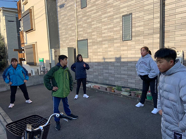 今天早上06:30就起床了,因為07:00要跑步晨操,東京的早上很冷,可能是剛融雪的關係,手機上顯示-1度,我長這麼大,第一次遇到有負攝氏度的天氣,真心感覺好冷喔!但是我們還是很認真的做操跑步。