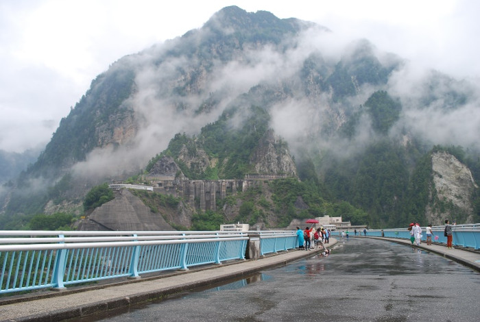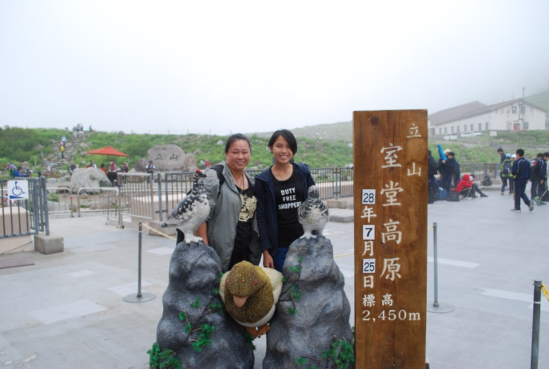 第二天一早搭就準備上立山黑部,先從立山驛搭電動纜車道美女平,以前日本的聖山向來不准女人進入,有位女生為了看未婚夫而闖入聖山,因而觸犯山神,被變成這株杉樹。現在女人可以隨意進入聖山了,而這株杉樹依舊矗立在美女平上。隨後搭乘50分鐘的高原巴士到室堂,冬天時這路上會有高高的雪牆,夏天是一片綠蔭,有不同感受,如果以後有機會我冬天也要來一次。山下的天氣原本很熱,當到室堂一下了巴士,氣溫約14度,空氣中也佈滿濃濃的霧氣,我們在室堂待了兩個小時,但因為霧氣很重什麼都看不大到,我們就逛逛而已,還寄了張明信片回台北,用完餐後搭無軌電車穿過立山主峰到達大觀峰,再空中纜車到黑部平,在那裡真的是伸手不見五指,接著又馬上搭地下纜車到黑部峽谷,那的風景很美,因為現在是洩洪時間,所以看的到這壯觀的景象,涼涼的溫度加上美麗的風景,讓人心曠神怡,最後搭無軌電車到扇澤站,我從沒到那麼高山過,抵達時經下午四點了,真是難忘的經驗。