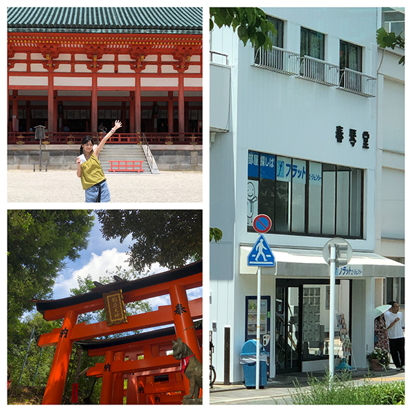 一口牛奶、一口優格,早餐享受著日本最出名的乳製品,台灣牛乳的腥味在日本牛乳中消失殆盡,喝起來滑順可口;油脂飽滿、鮮美的烤秋刀魚,也是日劇中三餐的必備品,不像台灣的魚總是乾口、不夠濕潤。初次拜訪神社,有很多規矩要了解,例如鳥居是神明與人類的結界,也是神明坐騎的休憩地,因此在跨入之前要懷抱著虔誠的心,敬禮再踏入鳥居。參拜前的洗手要先洗左手,再洗右手,最後用左手盛水洗口。還有參拜前必須投硬幣與神明結緣,想投入多少錢也和台灣一樣,會根據吉利的諧音決定金額,例如十円代表日語的「重緣」。投入硬幣後,要「二禮二拍一禮」,先敬禮兩次,再拍手兩次,接著許願,最後再敬一個禮。千萬不可以像台灣拜拜一樣搖手,會變成「乞討」!進到伏見稻荷神社,排排站的鳥居成了一條隧道,陽光在其中縫隙穿透閃耀,畫面顯得夢幻不已。蓋一個最小的鳥居就要花費高昂的費用,因此沿路都是公司行號的鳥居。神社周圍常看到神明的使者――狐狸的雕像,口中銜著不同東西,各有不同的祝福寓意,銜著稻穀和穀倉鑰匙的是祈求豐收、銜著寶玉則是代表富貴等。繞了伏見稻荷神社一圈,已經汗如雨下、衣服濕透了,不禁好奇日本明明緯度較高,怎麼感覺比台灣熱得多?原來是因為我們的所在地京都,是盆地地形,夏天的熱氣不易散發,不僅悶熱,甚至沒有風!接著拜訪三大神宮之一――平安神宮,看見地上鋪滿了小石子,導遊解釋在日本鋪上小石子的用途有三種:第一種是因為古代日式城堡中的城主擔心忍者暗殺,因此在地面鋪上小石子,縱使步伐輕盈,小石子仍會摩擦發出聲響,或許能救城主一命;第二種則是在神社、廟宇,儀式服裝的裙襬通常都長至及地,下雨天時若是沒有小石子,裙襬直接接觸地上的濕泥巴,不僅髒兮兮的,還可能對神明不敬重;第三種是因為樹根需要呼吸,若是鋪柏油,可能會讓大樹「缺氧而死」!遠近馳名的清水寺,果然滿滿的都是人群,不過看見清水舞台下方支撐的139根櫸木後,心中只剩下佩服古代匠工技術的想法了。後來走到商店街內,買了一根檸檬醃黃瓜,直接啃食,消暑又解渴!在坐遊覽車去花見小路的路上,發現京都的公車都是統一造型,沒有貼任何廣告單,十分整潔乾淨。但日本的計程車卻是鮮明的紅黃綠,各種顏色都有,車頂燈也有各種可愛的小圖案,例如四葉草、大象等,與台灣一致化的小黃造型相反。以及日本的景觀法規定古蹟附近的房屋都不可以超過古蹟本身的高度,屋頂的顏色也都有統一規定,讓古蹟附近的區域在視覺上一致化。日本和台灣一樣,都是受地震所苦的國家,因此公路上的高架橋支柱特別粗,是用防震水泥製成的。在路途中我也看到日本住宅的陽台是和鄰居共用的,但為了隱私,兩間房中間仍有使用一塊板子隔開,而且若是有緊急狀況發生,只要踢破那層板子,就可以從鄰居家逃生。一路上聆聽了多日本在地化的介紹後,終於抵達花見小路,藝妓在一個個小巧復古的店面裡招待貴賓,也因為保護顧客不要在光顧店面時被偷拍,造成心理壓力,整條街道都不能拍照。接著到附近的相撲火鍋吃晚餐,享用道地的京都豆腐,綿密的口感跟台灣嫩豆腐的滑溜口感大相逕庭。吃完到附近的公園走走,路上都是赤松和黑松,也充斥著烏鴉的叫聲。我也好奇為何日本路上如此多電線桿,原來是因為日本地震很嚴重,若是將電線埋在地底,要搶救時還得挖開地面,更加多此一舉。廟宇、店家的屋瓦上都有一個可愛的造型,這不僅是特色,也是象徵防火的神明,讓日本的木造建築都能免於祝融。不只是防火的鬼瓦,還有財神爺的造型!晚上入住御宿野乃溫泉飯店,在各種不同功效的溫泉裡浸著,放鬆身心,身體也暖和起來了!泡完溫泉,穿上浴衣和木屐襪保暖,讓溫泉的熱度保留在身上。